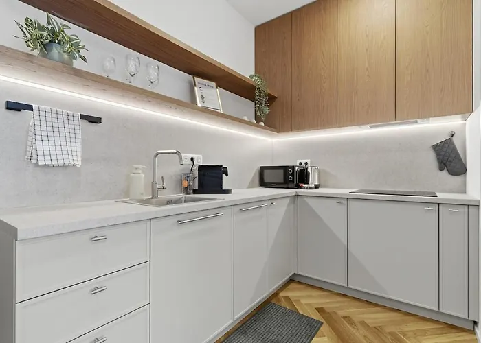 Luminous City View Apartment har ett komplett kök, perfekt för gästerna som vill laga sina egna måltider. Den närmaste busshållplatsen Hodzovo nam ligger cirka 5 minuters promenad från lägenheten.